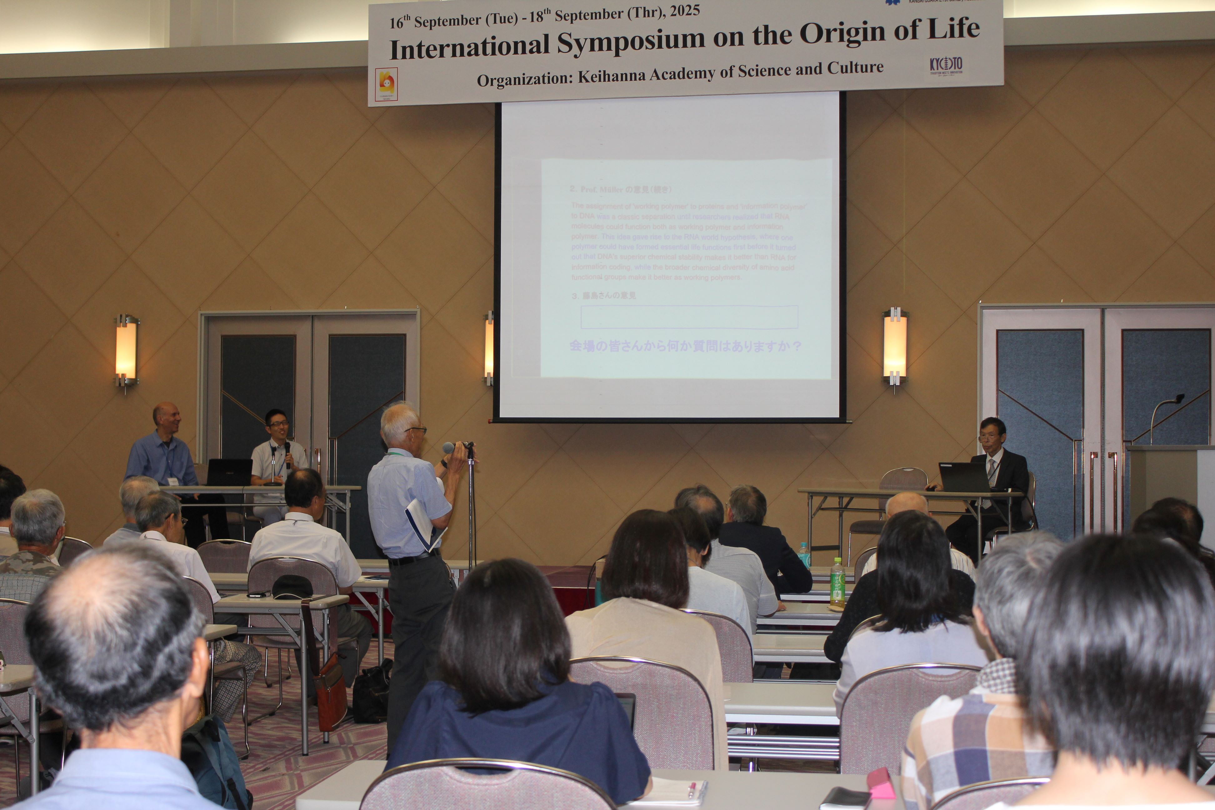 「いのち輝く未来社会のデザイン」をテーマとする大阪・関西万博2025に呼応して、「けいはんな万博2025」が関西文化学術研究都市で開催された。一方、”いのち”すなわち”生命”の起源を明らかにすることは、”いのち”の本質を科学的側面から理解すると共に「人間とは何か」などを理解するための基礎を提供することでもある。しかし、多くの研究者による長年の努力にもかかわらず生命起源の謎は今なお明らかにされていない。そこで、異なる考えを持つ国内外の研究者が生命の起源について議論する生命の起源に関する国際シンポジウムを開催することとした。その中で「生命の起源を解明するには何が必要なのか」について議論が行われるなど、今後の生命起源の研究にとって意義深いシンポジウムとなった。このように、今回のシンポジウムが無事に完了したことを報告させていただきます。