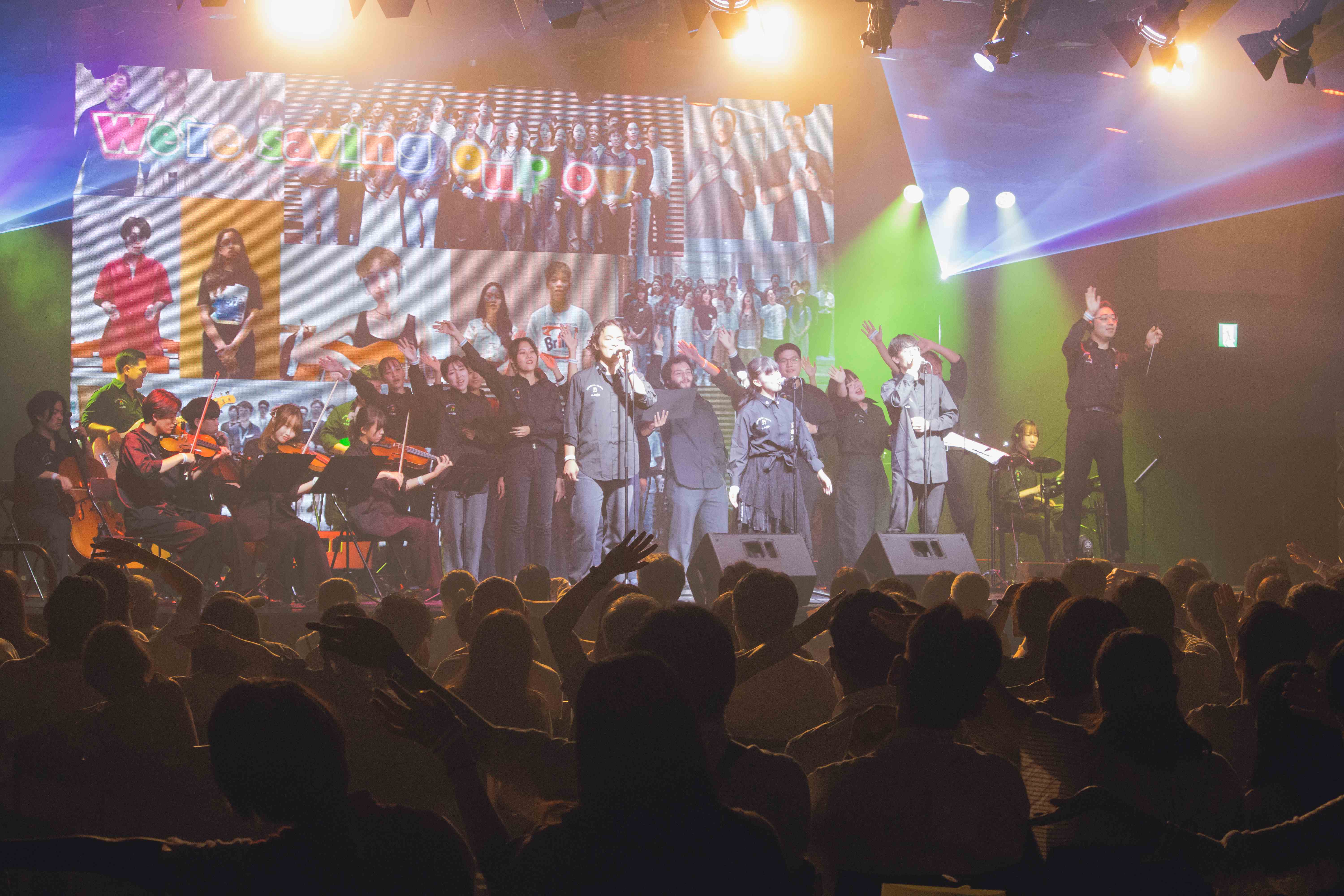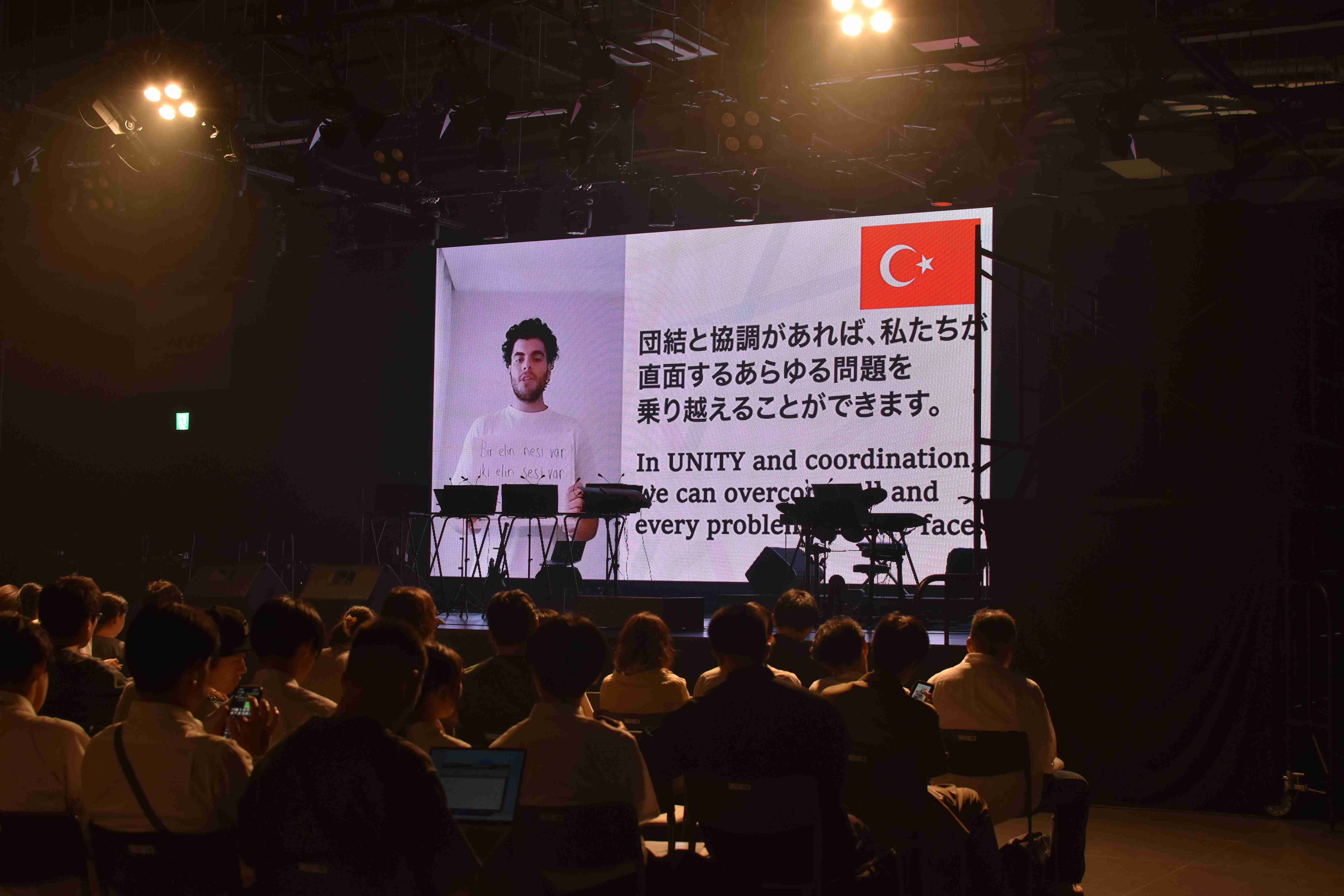 2025年9月27日、大阪・関西万博会場内のフェスティバル・ステーションで「e-Symphony in EXPO 2025 ~Music Unites the World~」を開催しました。ドイツ・ハンガリー・フィリピンとオンラインで接続し、録画参加を含め計41の国と地域から218名の学生と一緒に演奏しました。約250名の方にご来場いただき、配信も併せて多くの方に、演奏を通じて「UNITY」という理念を伝えることができました。また、海外メンバーや観客などこのイベントに関わる全ての人が、言語・文化・距離を超えて世界をつなぐ音楽の力や楽しさを分かち合うことができたイベントとなりました。