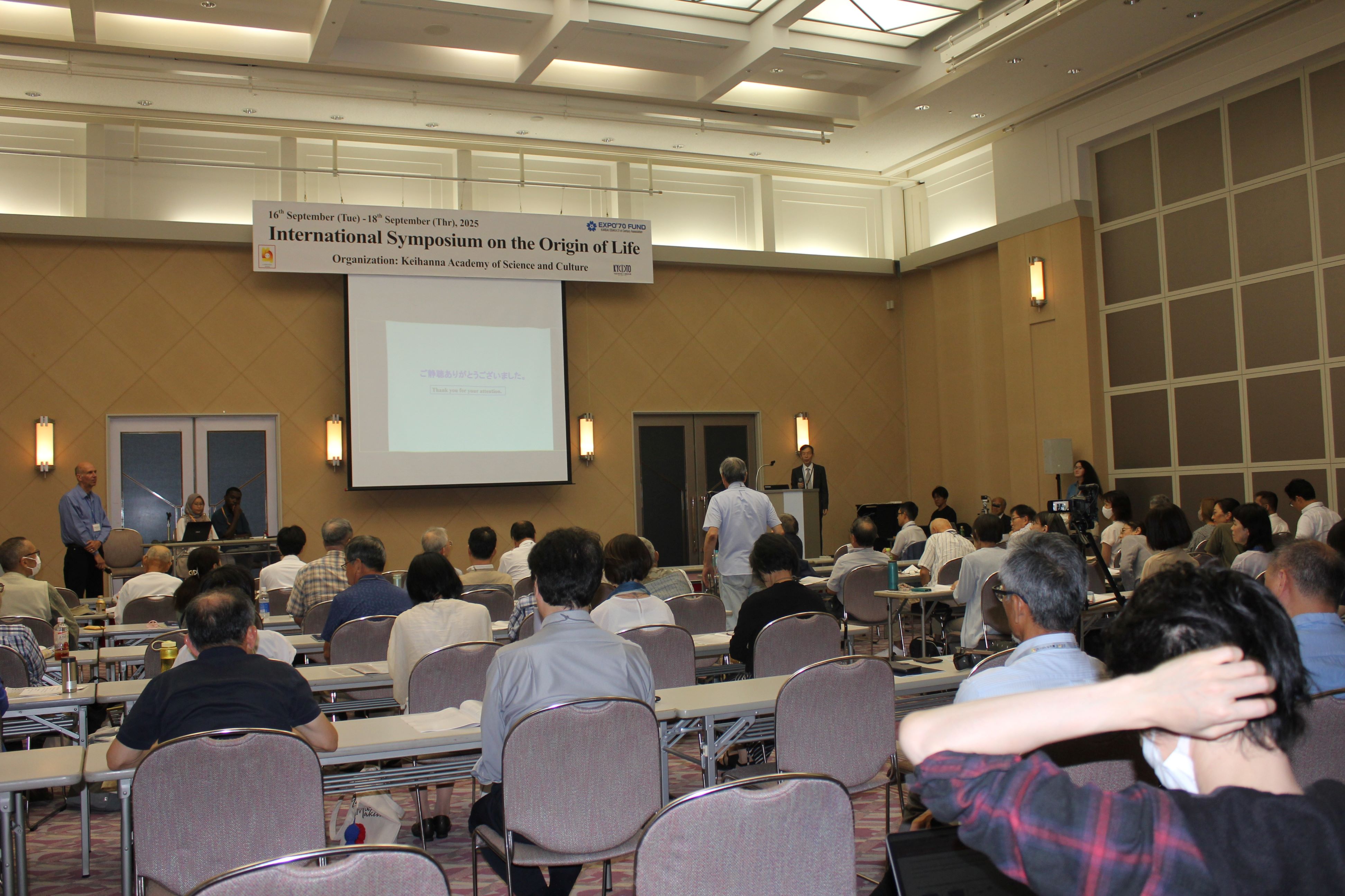 「いのち輝く未来社会のデザイン」をテーマとする大阪・関西万博2025に呼応して、「けいはんな万博2025」が関西文化学術研究都市で開催された。一方、”いのち”すなわち”生命”の起源を明らかにすることは、”いのち”の本質を科学的側面から理解すると共に「人間とは何か」などを理解するための基礎を提供することでもある。しかし、多くの研究者による長年の努力にもかかわらず生命起源の謎は今なお明らかにされていない。そこで、異なる考えを持つ国内外の研究者が生命の起源について議論する生命の起源に関する国際シンポジウムを開催することとした。その中で「生命の起源を解明するには何が必要なのか」について議論が行われるなど、今後の生命起源の研究にとって意義深いシンポジウムとなった。このように、今回のシンポジウムが無事に完了したことを報告させていただきます。